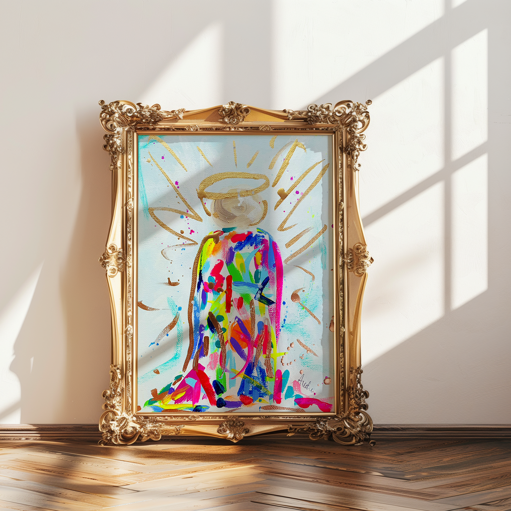 Colorful Angel Print, Christian Art, Dopamine Decor, Trendy Colorful Wall Poster, Maximalist Home