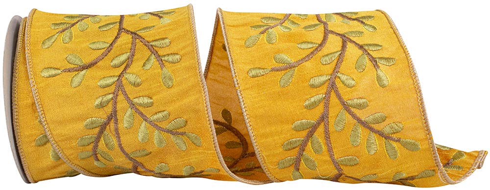 Vine Sunset Deluxe Embroidery Wired Edge, Mustard, 4 In