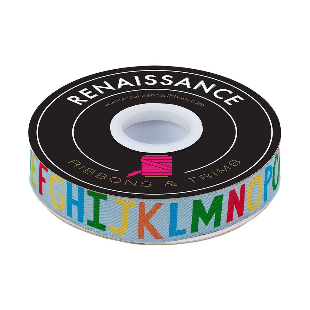 Alphabet Soup in Bright Sky - 7/8" width - Back to School by Stacy Iest Hsu - 15 Yard Spool