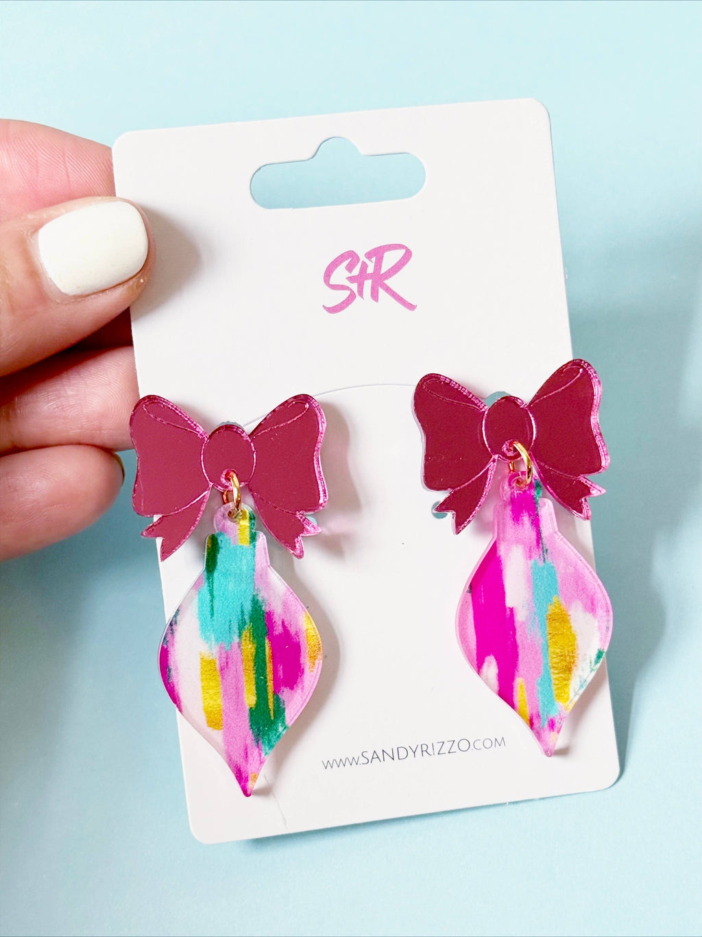 Color Play Acrylic Ornament Dangle Earring with Pink Bow